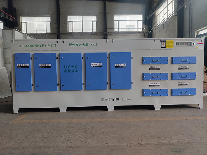 本產品利用特制的高能光束照射惡臭氣體,裂解惡臭氣體如:氨、三甲胺、硫化氫、甲硫氫、甲硫醇、甲硫醚、二甲二硫、二硫化碳和苯乙烯、硫化物H2S、VOC類、苯、甲苯、二甲苯的分子鏈結構,使有機或無機高分子惡臭化合物分子鏈,在高能紫外線光束照射下,降解轉變成低分子化合物,如CO2、H?O等。